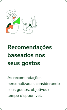 As recomendações personalizadas considerando seus gostos, objetivos e tempo disponível.
